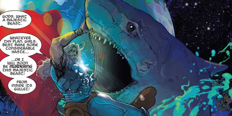 Seperti yang diketahui, Space Shark sendiri sebenarnya pernah juga muncul dalam cerita Thor yang ditulis oleh Jason Aaron. Starsharks banyak muncul di sepanjang seriesnya termasuk dalam sebuah realita alternatif dimana tiga generasi Thor hadir bersamaan dan harus bertarung melawan mereka. Spacesharks sendiri berhasil mengalahkan Thor, namun King Thor mampu mengalahkan salah satunya.